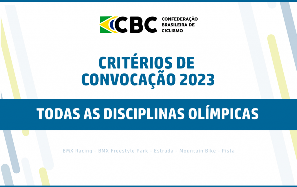 A Confederação Brasileira de Ciclismo (CBC) tendo como objetivo aprimorar o sistema de preparação esportiva nacional de forma objetiva e justa, pautada por seu planejamento de alto rendimento para o ciclo olímpico de 2021/2024, vem por meio deste comunicado, informar os critérios para composição das seleções brasileiras de ciclismo das disciplinas de BMX Racing, BMX Freestyle Park, Estrada, Mountain Bike e Pista para a temporada 2023.