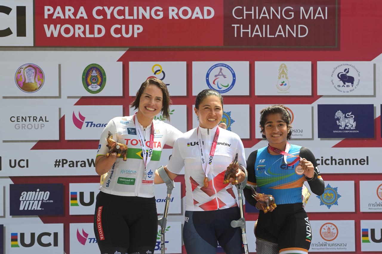 O Brasil assegurou mais um excelente resultado no terceiro dia de competições da Copa do Mundo de Paraciclismo de Estrada, em Chiang Mai, na Tailândia. Nas primeiras provas de resistência (Road Race) para as categorias da Classe C, disputadas neste sábado (21 de março), Sabrina Custódia foi o grande destaque ao conquistar a medalha de prata na categoria WC2.