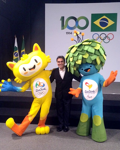 Vasconcellos com os mascotes Rio 2016Crédito: CBC/DivulgaçãoLançados no último domingo, 30 de novembro, através do programa Fantástico, da Globo, os mascotes dos Jogos Rio 2016 foram criados inspirados na fauna e na flora brasileira. O evento oficial de lançamento foi realizado nesta segunda-feira, 1 de dezembro, no Rio de Janeiro, e contou com a presença do presidente da Confederação Brasileira de Ciclismo, José Luiz Vasconcellos.